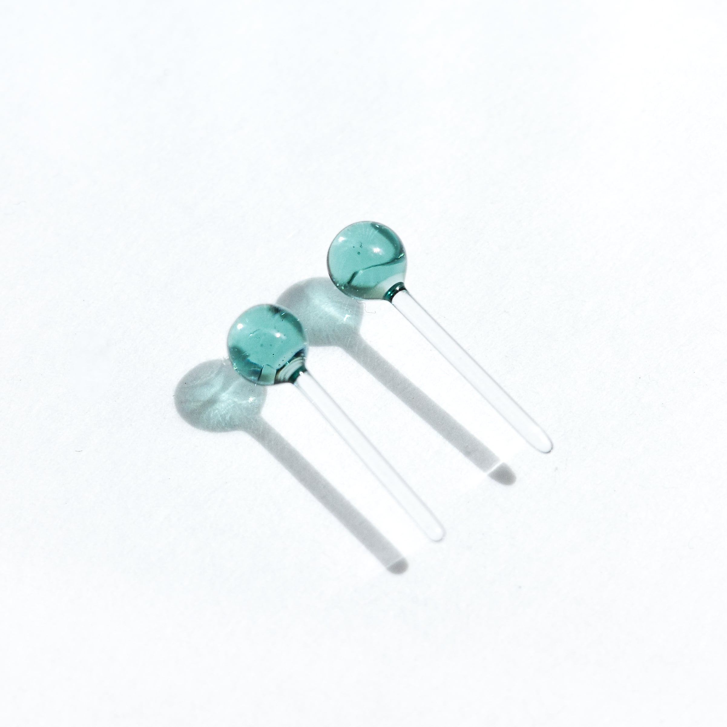 その中でも硬質ガラスは高い強度と透明度を誇っており、こちらのピアスはトップからシャフトまですべて一体の硬質ガラスを使用しております。
